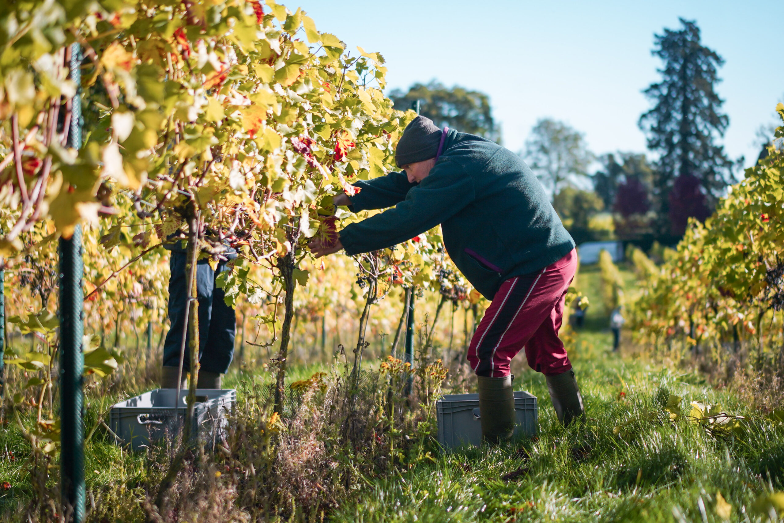 When the grapes are just right, it’s all hands on deck – quite literally! Harvest is a family affair here, with everyone involved, from the youngest to the oldest. We invite friends of Colemere and neighbours to join in too. There’s a real sense of community as we move row by row, gently cutting bunches and placing them into crates. Without our kind volunteers, harvest would prove difficult, so thank you to everyone who is involved at this time.